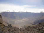 Puncak Tambora memiliki kawah yang sangat luas dan dalam. Pemandangan yang disajikan pun luar biasa indahnya. Lebih dari cukup untuk membayar pengorbanan selama pendakian. Jalur puncak merupakan jalur bebatuan kecil. Puncak tambora sendiri berupa tanah datar yang tidak terlalu luas dengan ketinggian 2,851 mdpl. Ketika di puncak kami tidak bisa berlama-lama, hanya 8 menit saja karena kabut mulai naik. Kami harus bergerak cepat untuk turun berpacu dengan kecepatan kabut yang sangat bersemangat untuk menutupi jalur kami turun.