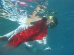 Setelah pengibaran Merah Putih, petualangan snorkeling kami pun  segera dimulai. Jarak pandang yang mencapai 10-15 meter diterangi cahaya matahari memantulkan pemandangan yang luar biasa dari terumbu-terumbu yang masih asri. Ikan-ikan kecil berenang gembira di sela-sela anemon-anemon. Karang-karang warna warni membuat bawah laut semakin indah untuk dipandangi.